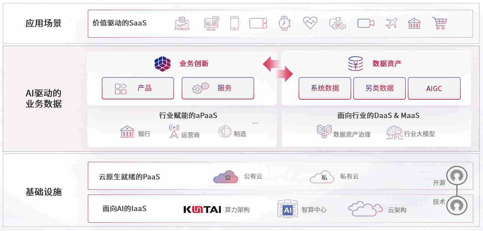 数字时代,,,,围绕企业数字化转型的关键要素,,,,28娱乐数码开创性的提出数云融合战略和技术体系框架,,,,着力在云原生、、数字原生、、、AI原生和信创产业上架构产品和服务能力,,,为处在不同数字化转型阶段的快消零售、、、、汽车、、、、金融、、、、医疗、、、政企、、、、教育、、运营商等行业客户提供泛在的敏捷IT能力和融合的数据驱动能力,,,构建跨界融合创新的数字业务场景和新业务模式,,,助力企业级客户建立面向未来的核心能力和竞争优势,,,全面推动社会的数字化、、、、智能化转型升级。。