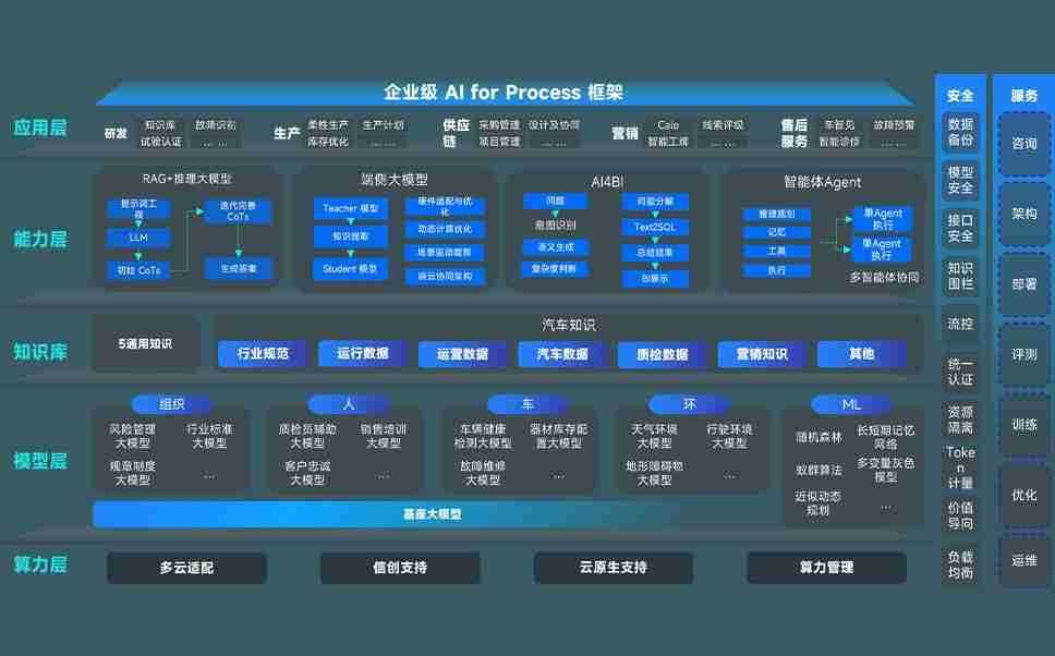 28娱乐问学智车解决方案是一套基于AI技术的汽车行业智能化系统,,覆盖从底层算力到顶层AI应用的全栈方案。。方案由算力层、、模型层和应用层组成:算力层,,,方案支持多种一体机配置,,具备云端灵活部署、、多云适配以及动态优化计算资源的能力;模型层,,,28娱乐问学平台版提供了企业级AI应用一站式构建与管理平台,,,支持基于后训练强化技术的汽车企业专属模型的训练、、、评测和运营;应用层,,,,28娱乐问学DeepSeek版提供包括超级员工、、、、智能招采、、、、智能营销、、智能客服、、AI for BI等一系列解决方案,,,,可助力汽车行业实现数字化转型,,,,让管理更智能、、响应更敏捷。。